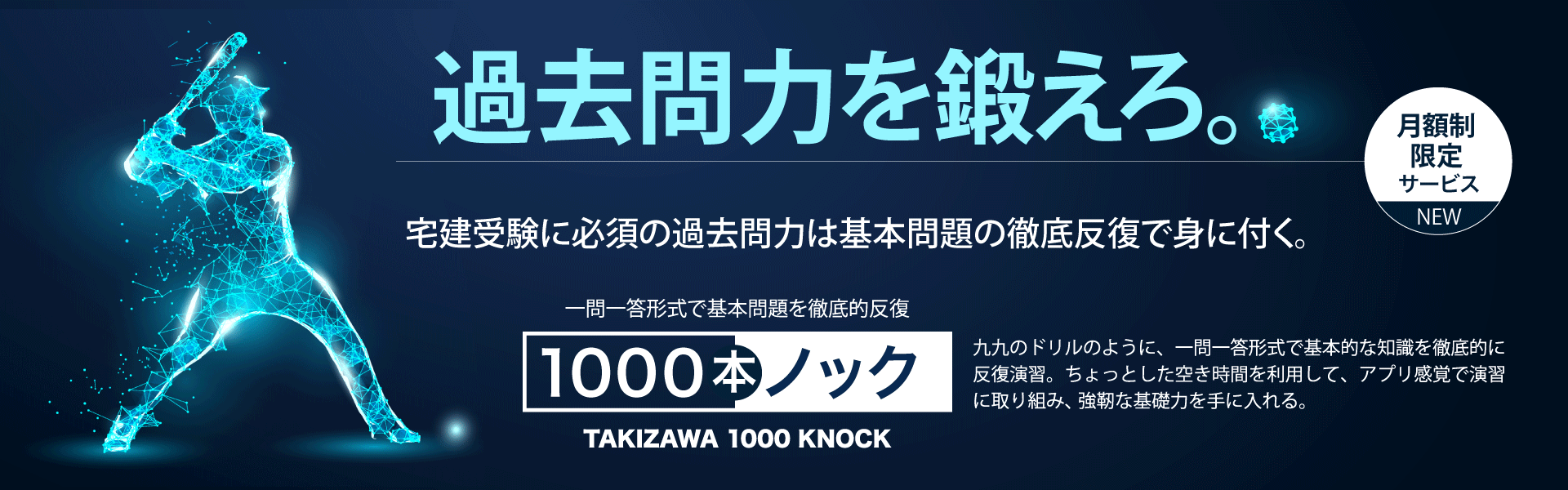 タキザワ1000本ノックは、「基本問題の徹底反復」をおこなうことで「過去問題を解く」ための基礎力を養成します。月額制クラス専用の演習システムは、あらゆるデバイスで利用できますので、通勤途中や、休憩時間といったスキマ時間にどんどん問題を解くことができます。